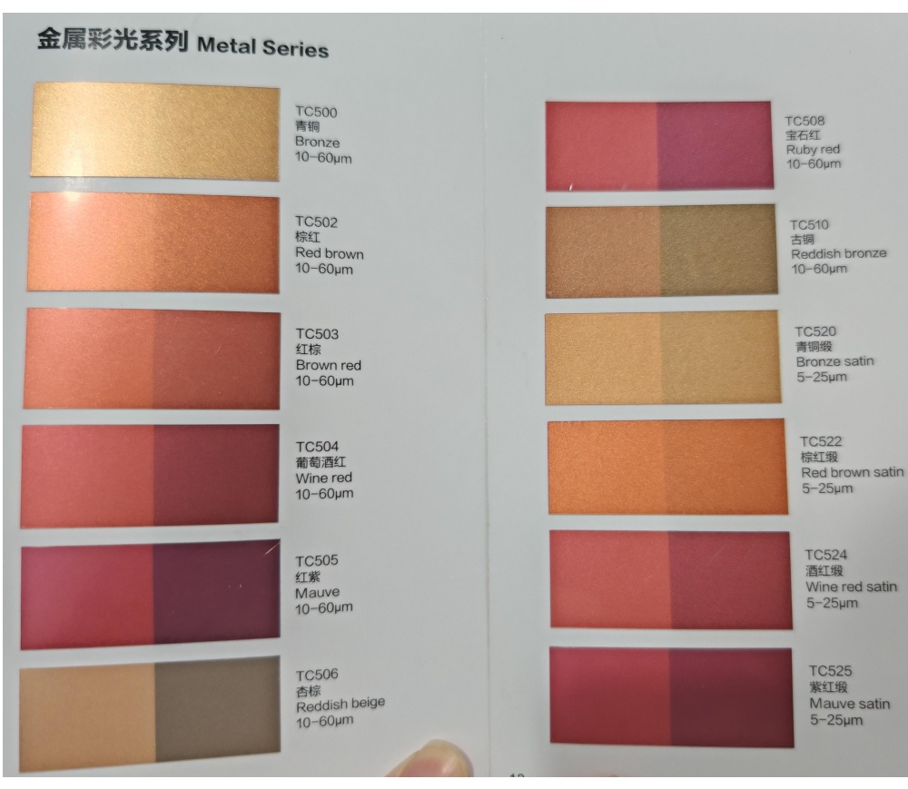 | TC3518 | Màu đỏ cam kim loại | 10-60μm |